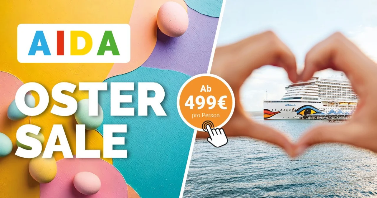 Nutzen Sie die Chance und sichern Sie sich jetzt eine Kurzreise ab Deutschland, eine Nordeuropa-Tour, eine Kreuzfahrt im westlichen oder östlichen Mittelmeer oder in der Adria zum AIDA VARIO Knallerpreis! Der Oster Sale läuft bis zum 23. April 2025, also über das diesjährige Osterfest (Ostersonntag ist am 20. April 2025). Die Kontingente sind limitiert. Suchen Sie sich daher gleich Ihre Wunschreise aus.