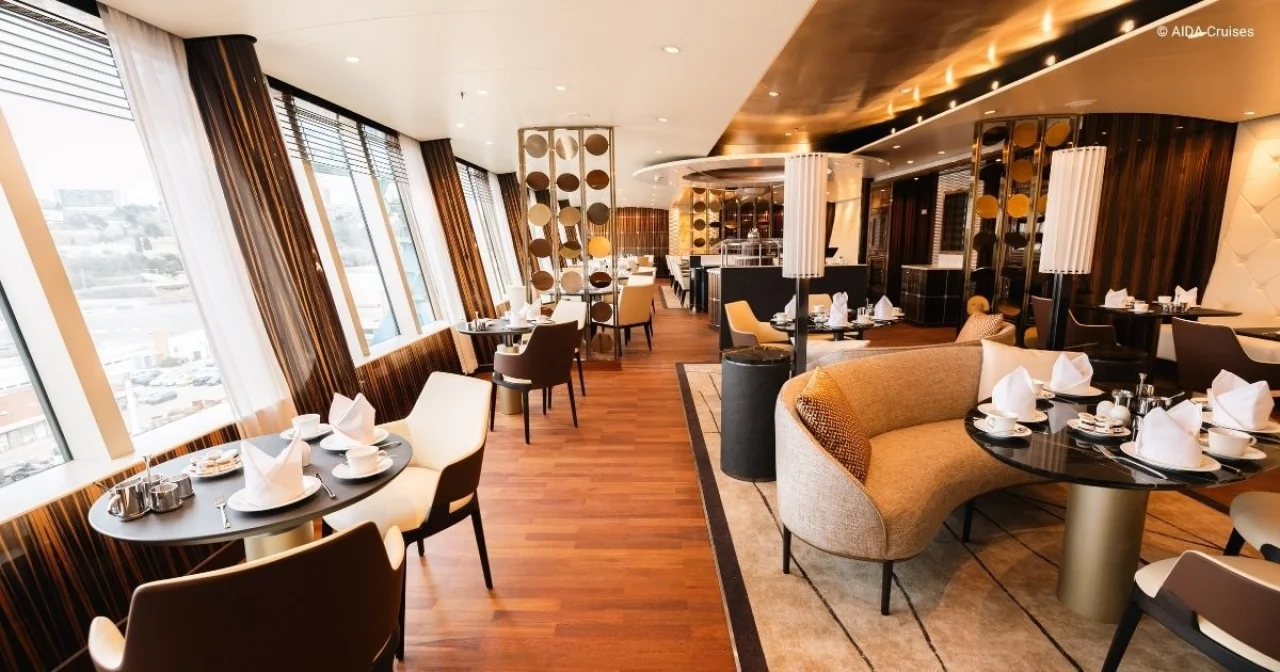 Das zentrale Theatrium wurde mit neuen Sitzgelegenheiten und einem harmonischen Farbkonzept runderneuert und dadurch die Raumaufteilung optimiert. AIDA verspricht auch besondere kulinarische Genüsse dank der French Kiss Bar & Bistro mit französischen Spezialitäten und Snacks, welche sich direkt am Theatrium auf Deck 10 befindet.