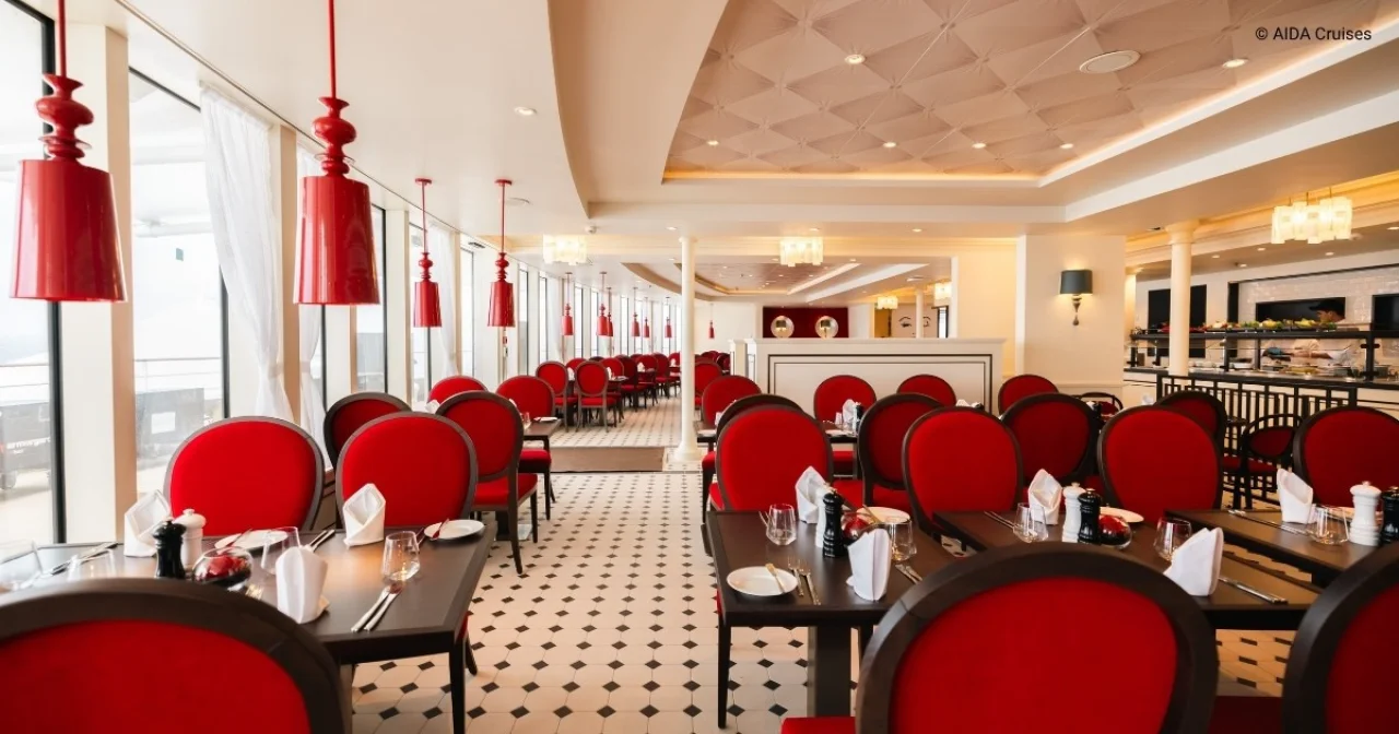 Die neue kulinarische Meile geht über in die angrenzende Tokyo Bar (neu Nr. 27), bevor es ins neue French Kiss Restaurant am Heck geht (neu Nr. 29). Das Konzept mit Leckereien der französischen Küche ist bekannt von den neuen Kussmundschiffen und offenbar so beliebt, dass AIDA es auf die Sphinx-Klasse bringt.