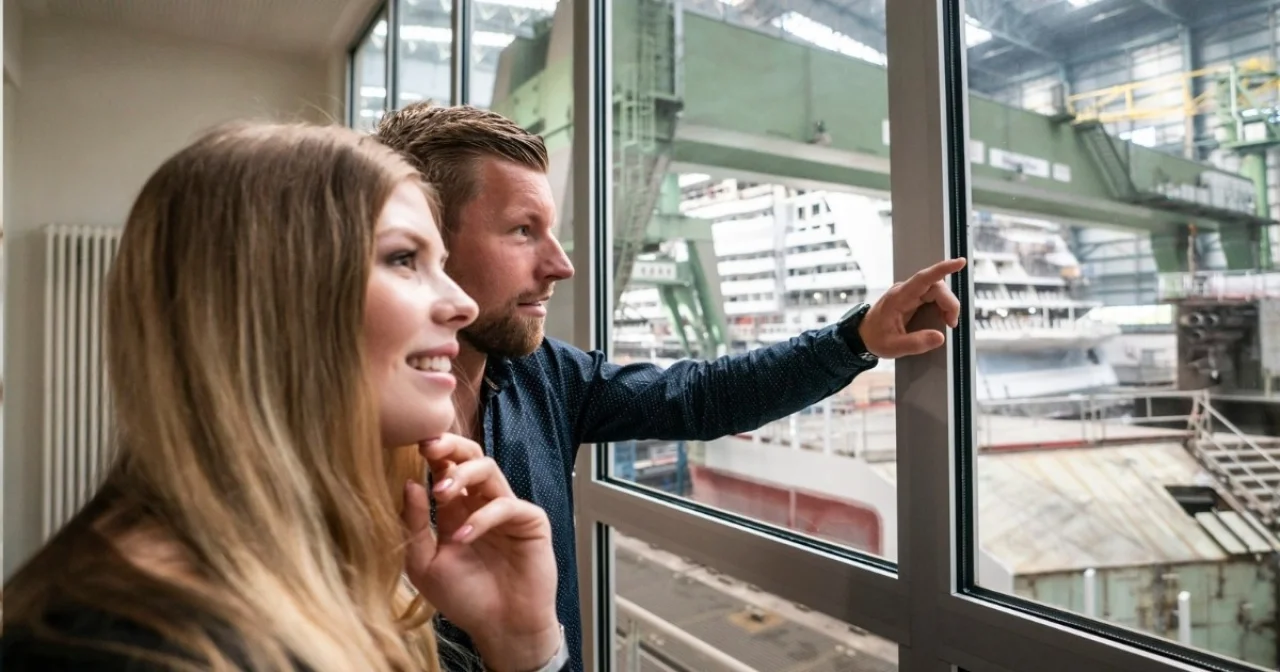 Die exklusivste Tour beginnt in der Innenstadt und führt per Shuttle-Bus direkt auf das rund 45 Hektar große Gelände der Werft. Dabei erhalten Teilnehmende seltene Einblicke in normalerweise nicht zugängliche Bereiche und kommen etwa in die Nähe der mächtigen Werfthallen, Docks und tonnenschweren Schiffsbaublöcke. Aus nächster Nähe lässt sich beobachten, wie moderne Kreuzfahrtschiffe entstehen und wie präzise die Mitarbeitenden der Werft an den Ozeanriesen von morgen arbeiten. Ein erfahrener Gästebetreuer begleitet die Teilnehmenden nicht nur über das Gelände, sondern auch durch das Besucherzentrum, in dem eine Ausstellung die über 200-jährige Geschichte sowie die aktuellen Technologien der Meyer Werft eindrucksvoll veranschaulicht.
