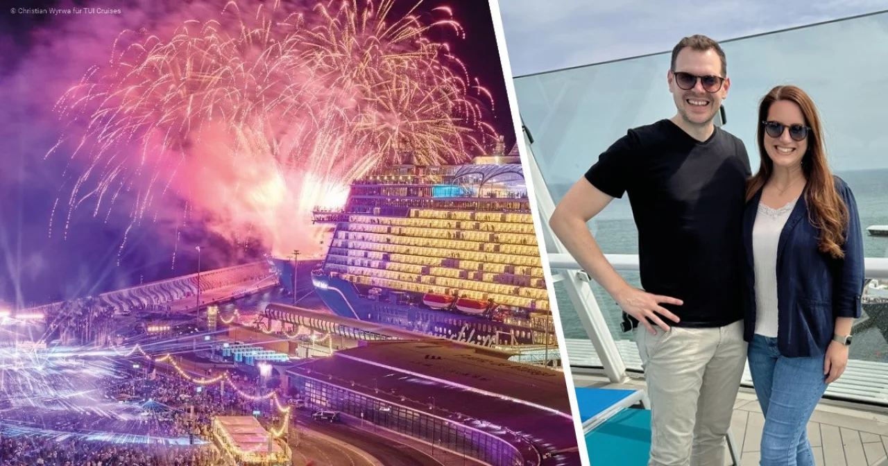 Als am 07. April 2025 das neueste Wohlfühlschiff von TUI Cruises in See stach, waren Rebekka, unsere Head of Sales, und Johannes, unser Geschäftsführer, mit dabei. An Bord haben die beiden fleißig gedreht, sodass Sie die spektakuläre Taufzeremonie, aber auch die Ziele der Reise hautnah nacherleben können.